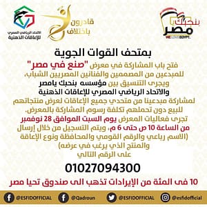 تم اليوم افتتاح معرض «صنع في مصر» المقام بمقر متحف القوات الجوية وتحت رعاية جمعية بنحبك يا مصر للتنمية برئاسة […]